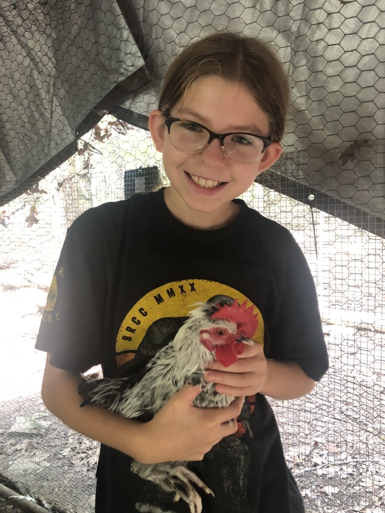 Me and Bolt, a bantam rooster Debbie will be sitting on her eggs for a total of 21 days. To hatch them she needs to keep the eggs the right temperature that ranges from 95 to 104 degrees. If the temperature gets below 80 degrees the eggs will not hatch. It makes me overall so happy to see that Debbie is sitting on her eggs and hopefully we will have baby chicks soon!