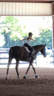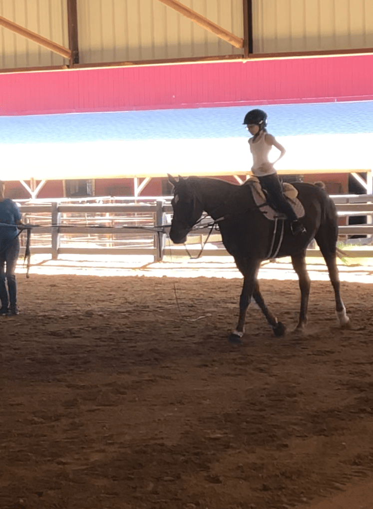 No hands in jumping position After the jumping position the rider is supposed to put their seat right back down once they are over a jump. After a few more circles around Debbie, Ice and I walked around the arena going in all the corners. I hopped off, gave him a sponge bath, and put him back in his stall. I absolutely LOVED this lesson and can’t wait to do it again!