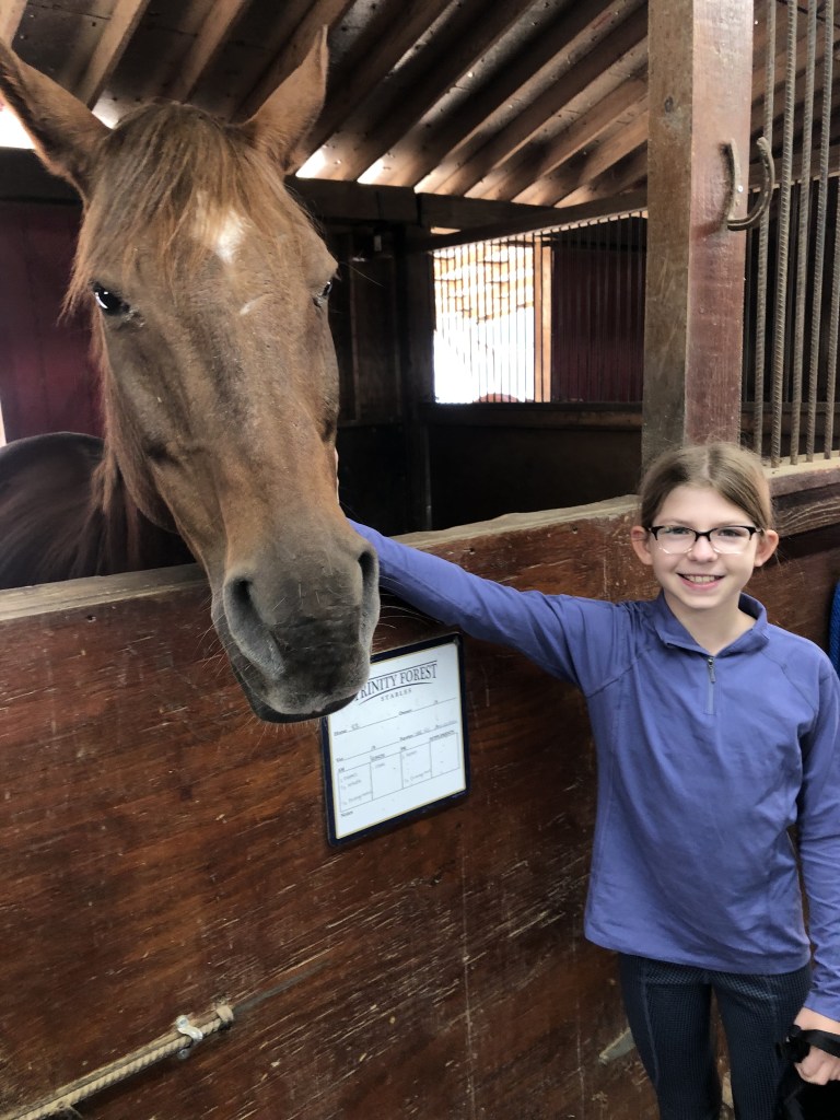 After we met Dancer up close, my mom talked to an equine vet while I was riding at Chantilly stables. Dr. Adcock said that he would come to the ranch in three weeks. When he arrived I had her halter off so he put that on. When he inspected Dancer he said that she had laminitis (lam-on-ite-us) , sore feet mostly in her front feet from not getting them clipped. To cure laminitis we need to put medication on her feet once a day but we can’t do that until we find someone to live on the property. We need a ranch hand because we can only go out once a week due to the long drive.