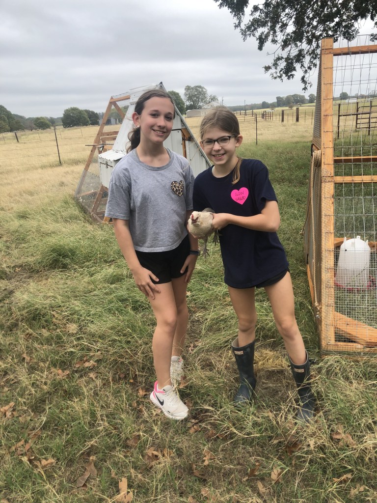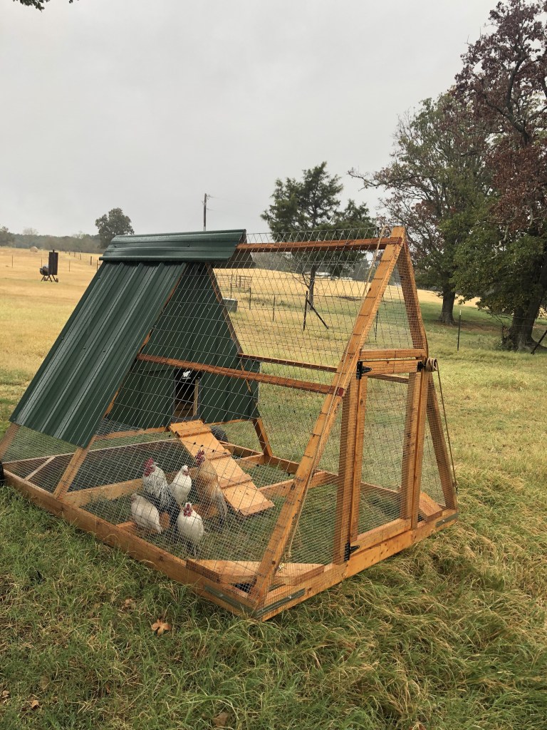 Our new Rio Grande Turkeys Time had gone by so fast (it was already 2pm) and we were just getting started. Once we got to the ranch, we unlocked the ranch house and got to work. By then it was lightly raining but I could tell we were going to get SOAKED. First we caught the chickens and put them in a run-down dog kennel that fell apart three times before we could get it in the back of the Can-Am. The first load of chickens that we caught was our rooster Lavy, who’s light purple, then Debbie and her two babies. Once we got to the other side of the ranch, we put the chickens in one of our two new chicken tractors. The second group that we brought over was all of the bantams and Easter eggers. The Easter eggers, Cash and Ravy, went into the tractor with Lavy’s flock while the bantams had their own tractor.