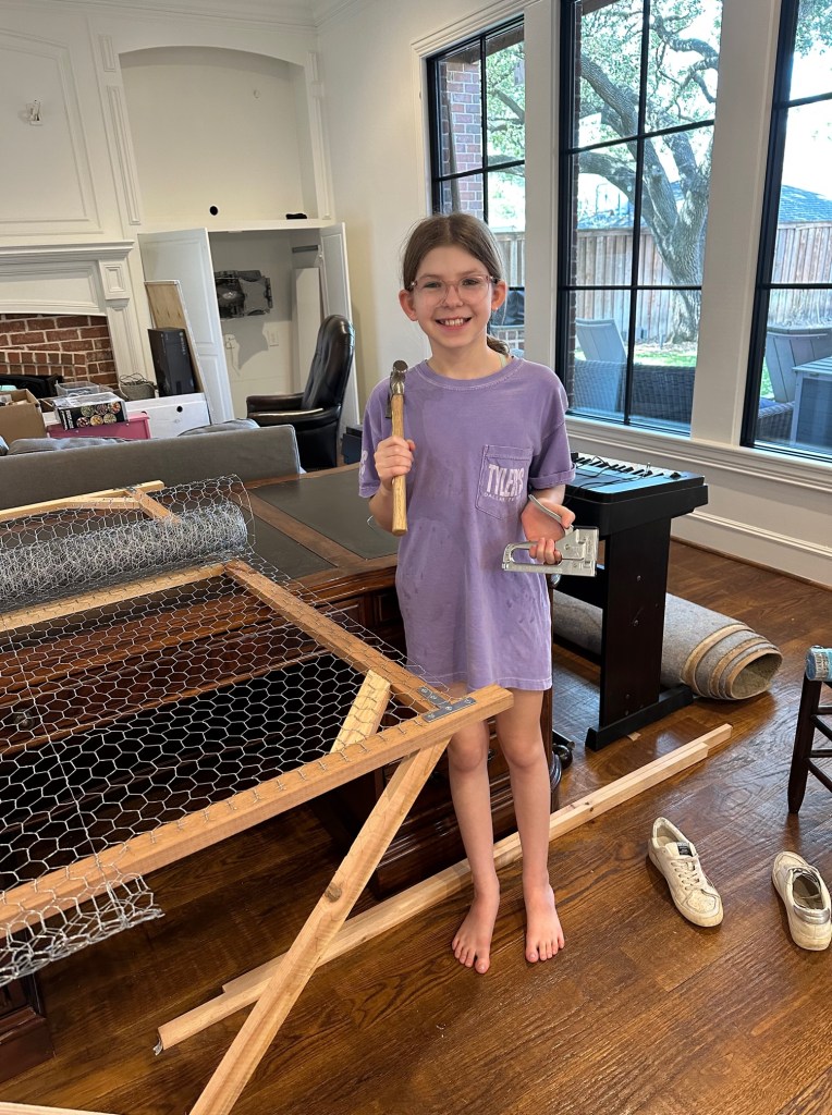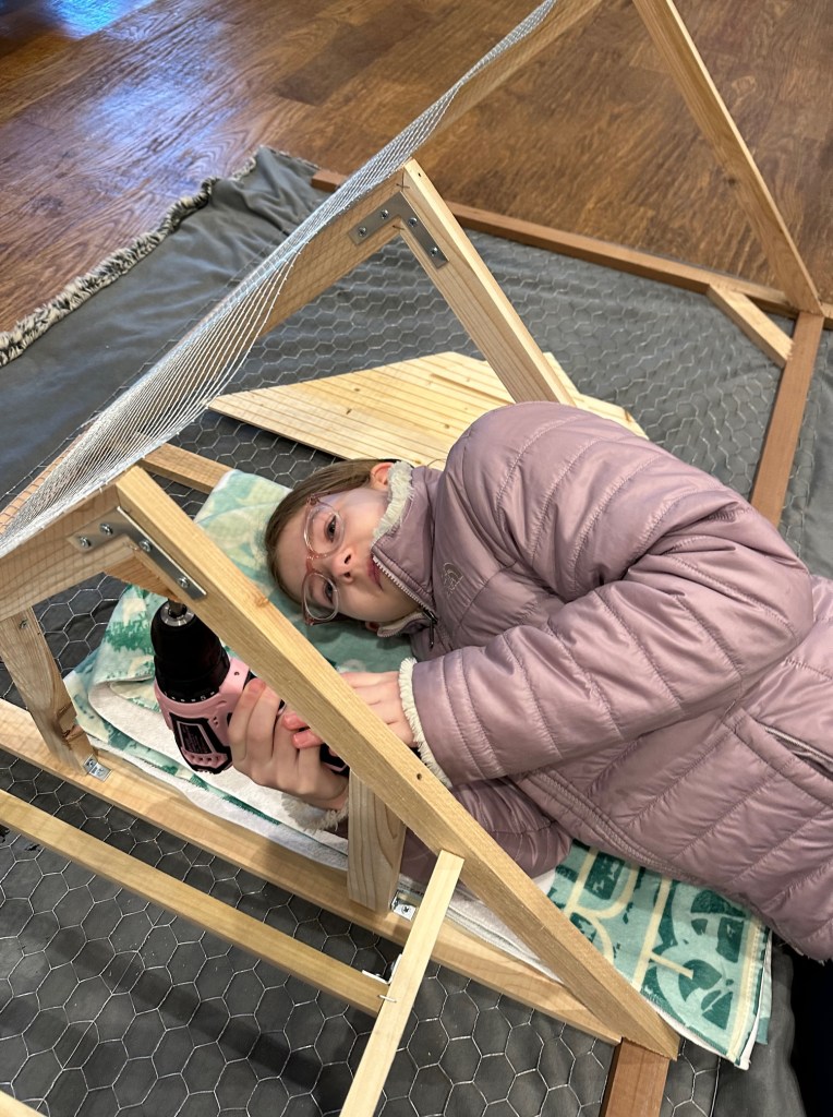 We were getting close to the quail eggs coming in the mail so we made it a priority to finish. We worked on it in the living room and back porch.