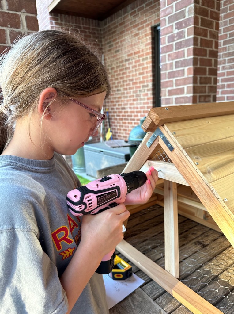 Me building the quail tractor with some of my favorite tools! We built the tractor out of cedar boards, chicken wire, wire mesh, metal bracing, pine shingles, wood screws and staples.